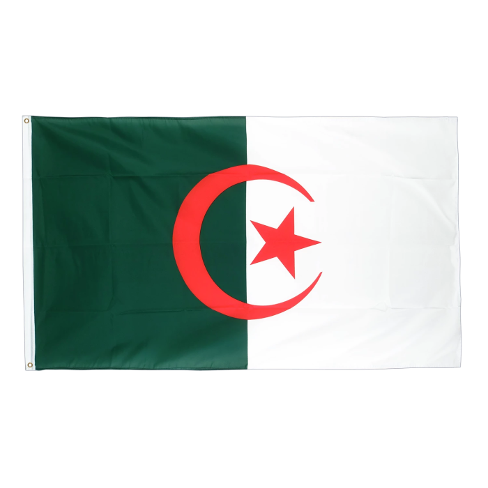 Флаг Алжира выполнен из полиэфирной ткани, обладающей отличными эксплуатационными характеристиками. Он устойчив к атмосферным условиям, легко окрашивается и сохраняет насыщенные цвета даже при длительном использовании. Легкость материала позволяет удобно поднять флаг, а его прочность предотвращает ускоренный износ, особенно в ветреных условиях. Флаг представлен в традиционной расцветке: две вертикальные полосы — зеленая и белая, с красным полумесяцем и звездой в центре. Зеленый цвет символизирует природу и ислам, белый — чистоту и мир, а красные элементы — борьбу за независимость. Флаг предназначен для идентификации судов при заходе в порт Алжир (Port of Algiers), порт Аннаба (Port of Annaba), порт Беджая (Port of Bejaia), порт Газауэт (Port of Ghazaouet), порт Мостаганем (Port of Mostaganem), порт Оран (Port of Oran) и порт Скикда (Port of Skikda), обеспечивая их соответствие международным стандартам и узнаваемость в морских перевозках.-
