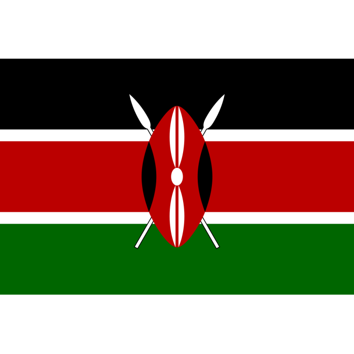 Флаг Кении выполнен в соответствии с государственным стандартом, отражающим национальную символику и идентичность страны. Он подходит для официальных мероприятий, а также используется при судозаходах в международные порты, включая Порт Момбаса (Port of Mombasa).Подробнее