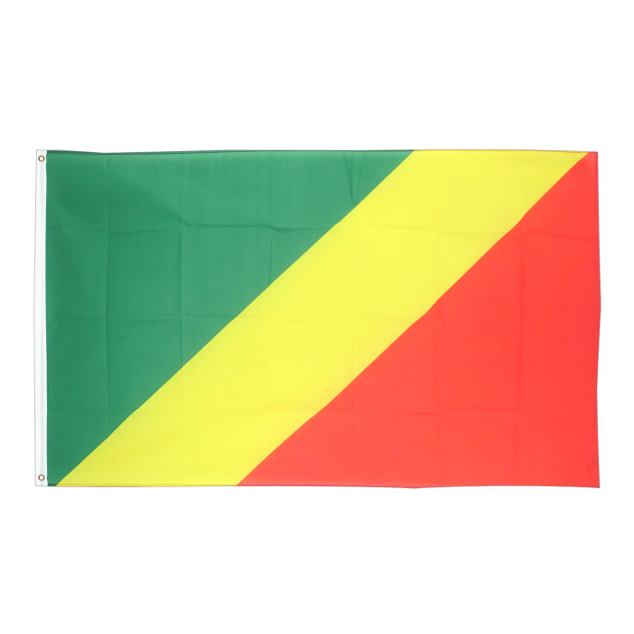 Флаг Конго выполнен из полиэфирной ткани, обладающей отличными эксплуатационными характеристиками. Он устойчив к внешним факторам, легко окрашивается и сохраняет насыщенные цвета даже при длительном использовании. Легкость ткани способствует удобному поднятию флага и предотвращает его ускоренный износ, особенно в ветреных условиях. Флаг Конго представлен в традиционной расцветке: диагональные полосы зеленого, желтого и красного цветов. Зеленый символизирует лесные богатства страны, желтый — процветание и природные ресурсы, а красный — смелость и борьбу за независимость. Флаг предназначен для идентификации судов при заходе в порт Пуэнт-Нуар (Port of Pointe Noire), соответствуя международным требованиям и обеспечивая их узнаваемость в морских перевозках.-
