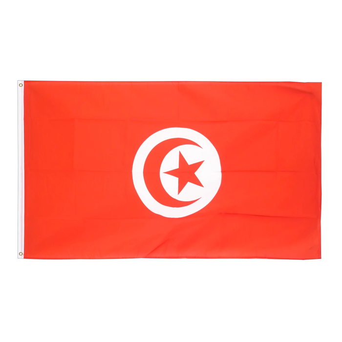 Флаг Туниса выполнен из полиэфирной ткани, обладающей отличными эксплуатационными характеристиками. Он устойчив к внешним факторам, легко окрашивается и сохраняет насыщенные цвета даже при длительном использовании. Легкость ткани способствует удобному поднятию флага и предотвращает его ускоренный износ, особенно в ветреных условиях. Флаг Туниса представлен в традиционной расцветке: красное поле с белым кругом в центре, внутри которого изображены красный полумесяц и пятиконечная звезда. Красный цвет символизирует кровь борцов за независимость, белый — мир и чистоту, а исламские символы отражают культурное наследие страны. Флаг предназначен для идентификации судов при заходе в порт Габес (Port of Gabes), порт Ла-Гулет (Port of La Goulette), порт Радес (Port of Rades), порт Сфакс (Port of Sfax) и порт Сус (Port of Sousse), обеспечивая их соответствие международным стандартам и узнаваемость в морских перевозках.-