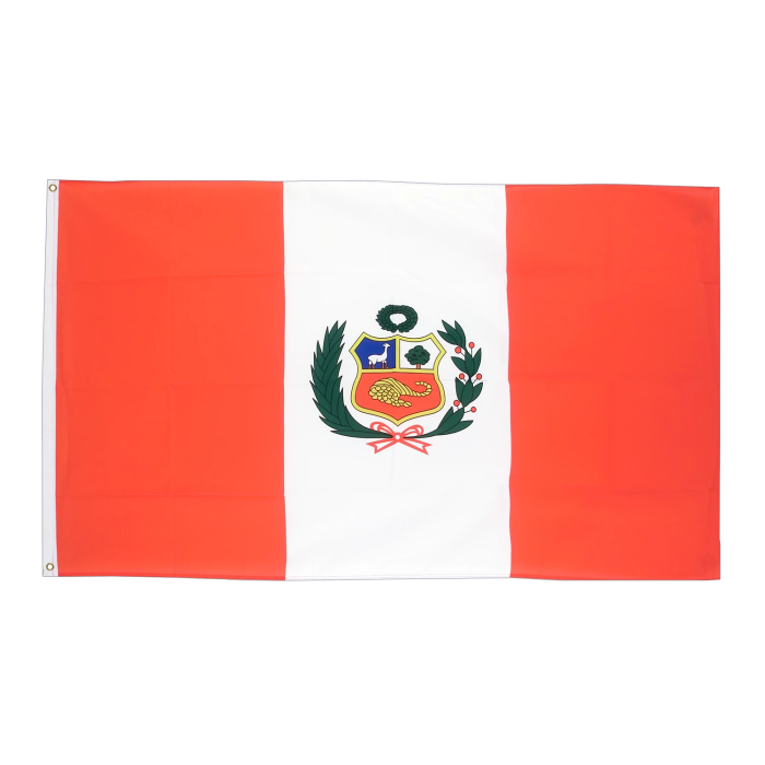 Для изготовления флага используется ткань плотностью около 210 г/м². Этот материал устойчив к воздействию внешней среды — не боится дождя, ветра и солнечных лучей. Полиэфир легко окрашивается, что позволяет добиться насыщенных цветов, характерных для государственного флага Перу. Флаг легкий, не деформируется при подъеме и не изнашивается даже при частом использовании. Флаг Перу выполнен в традиционной вертикальной триколорной расцветке: две красные полосы по краям и белая полоса по центру. В центре белой полосы может размещаться государственный герб (в зависимости от версии флага). Красный цвет символизирует кровь героев, а белый — мир и справедливость. Все оттенки на флаге яркие и стойкие, не выцветают под воздействием солнца. Этот флаг специально адаптирован для использования на морских судах, в том числе при заходе в главные перуанские порты — Порт Кальяо (Port of Callao) и Порт Пайта (Port of Paita). Он соответствует международным стандартам, обеспечивая узнаваемость и уважение к государственной символике Перу.-