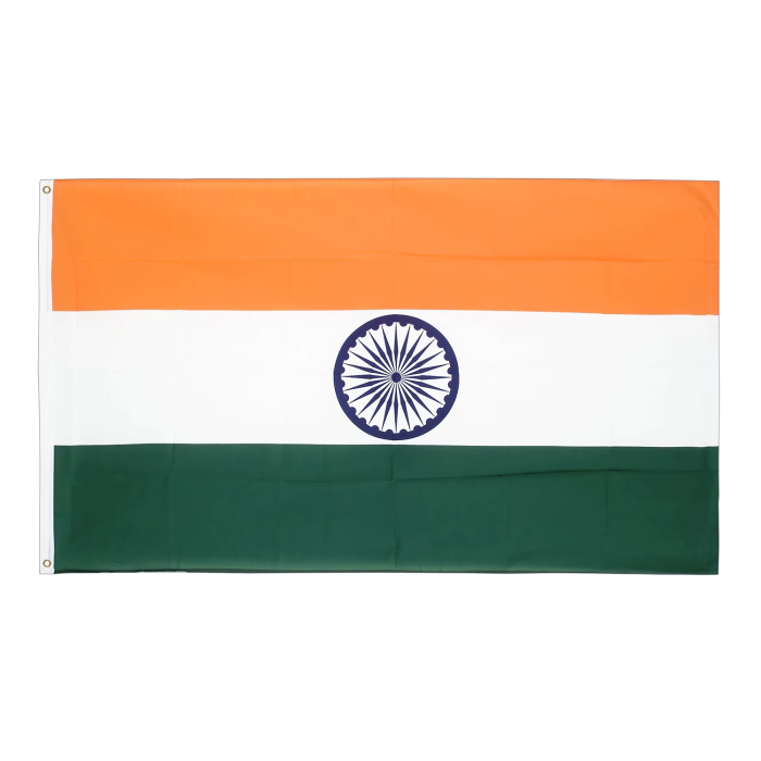 Для изготовления флага используется полиэфирная ткань с плотностью около 210 г/м². Этот материал обеспечивает высокую прочность и износостойкость при эксплуатации на открытом воздухе. Он устойчив к ветру, влаге и солнечным лучам, а также отлично держит цвет — что особенно важно для государственных символов. Лёгкость ткани упрощает установку флага и предотвращает его быстрое изнашивание даже в условиях интенсивного морского ветра. Флаг Индии исполнен в традиционных цветах: верхняя полоса — шафранового цвета, символизирующего отречение и силу; средняя — белого цвета, символа мира и истины; нижняя полоса — зелёного цвета, олицетворяющего плодородие и развитие. В центре расположен тёмно-синий колесообразный символ Ашока — Чакра, состоящая из 24 спиц, символизирующая справедливость, движение и прогресс. Все цвета нанесены ярко и точно, устойчивы к выцветанию. Флаг подходит для использования на судах при заходе в индийские порты: Порт Ченнаи (Port of Chennai) Порт Джавахарлал Неру / Нава-Шева (Port of Jawaharlal Nehru) Порт Мандра (Port of Mundra) Порт Пипавав (Port of Pipavav) Он соответствует международным требованиям к идентификации судов под флагом и может использоваться при любых международных морских переходах.