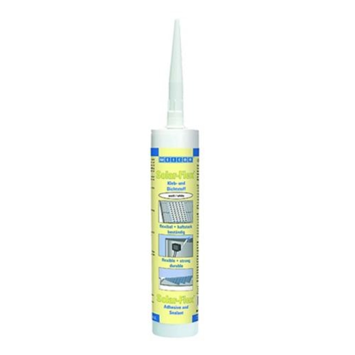 WEICON Solar-Flex отличается высокой начальной силой адгезии, что позволяет использовать его на вертикальных поверхностях без стекания. Клей-герметик не корродирует материалы, устойчив к атмосферным воздействиям, ультрафиолетовому излучению и экстремальным температурным перепадам. Он допускает окрашивание (метод «сырое на сыром») в течение первых 3 часов после нанесения пленки. Благодаря отсутствию силиконов и растворителей, материал совместим с большинством лакокрасочных покрытий и не вызывает их разрушения.