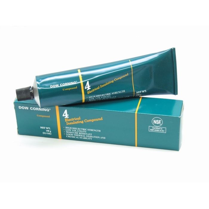 Компания «ПитерТрейд» предлагает электроизолирующий компаунд Dow Corning 4 (DOWSIL 4 DC) в фасовке 150 г. Это силиконовый материал с морозо-, термо- и химической стойкостью, применяемый для защиты и герметизации электрических узлов, а также для смазки сопряжений металл/пластик/резина. Продукт сертифицирован для применения в системах питьевого водоснабжения и в оборудовании пищевой промышленности.